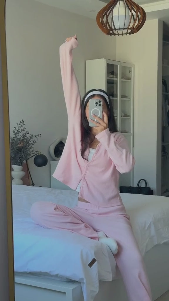 Pink Brushed Corded knitted Set
